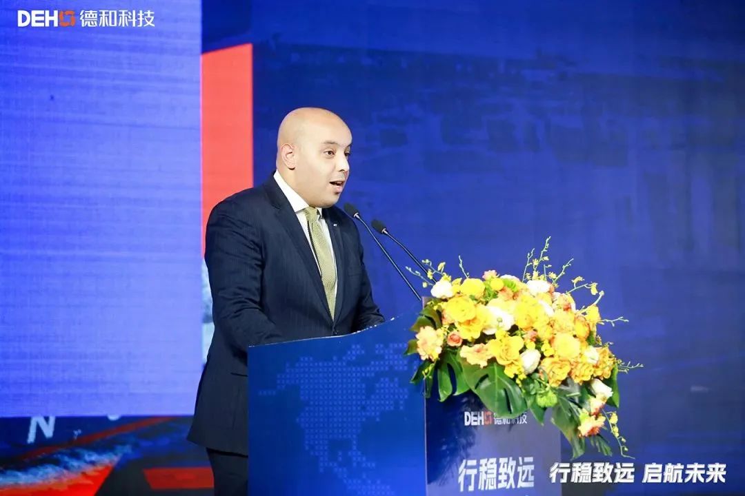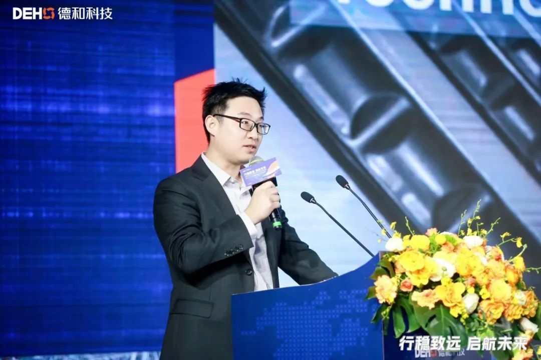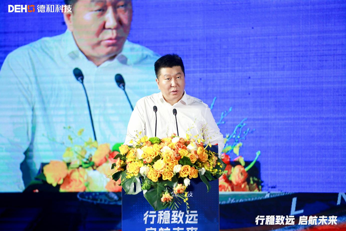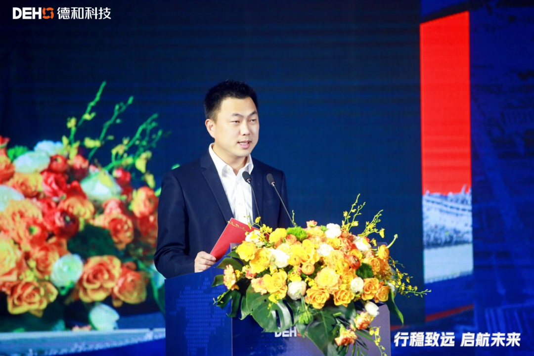 德和科技董事长管金国致辞,欢迎并感谢到会领导与嘉宾,并做【行稳致远,启航未来】的主题演讲,向与会嘉宾介绍了德和科技“一米宽、千米深”的创新理念。